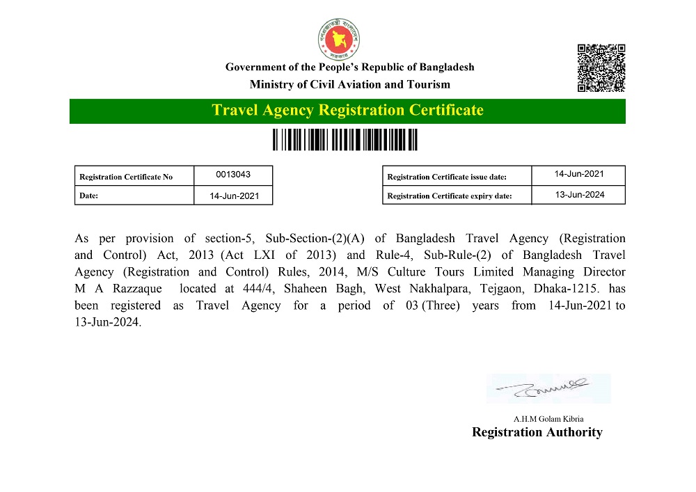 | Bank Details: | Bank Name: Bank Asia Limited. | Account Name: Culture Tours Limited. | Account Number: 62733000238 | Bank Asia Tower Branch | Routing Number: 070261040 | SWIFT Code: BALBBDDH627 |